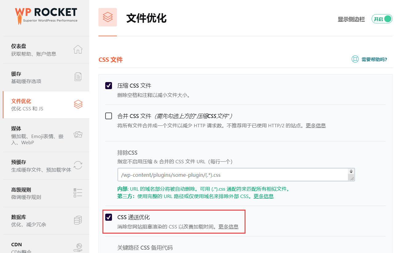 当开启这个选项后,WP Rocket会自动为首页、文章页、分类页、标签页、独立页面等不同模板类型的页面生成关键路径 CSS,背后的工作就是WP Rocket服务器会抓取这些页面,再通过特定规则判断哪些CSS内容是关键CSS,这部分内容会被内联到<head>