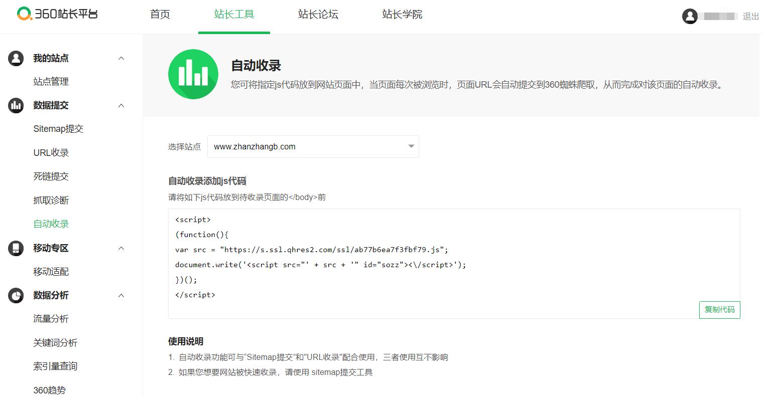 360站长平台URL:https://zhanzhang.so.com/