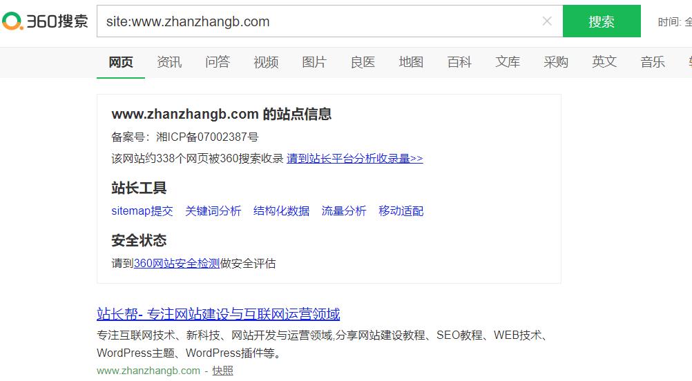 站长帮在放置自动收录代码之前360搜索收录量一直只有几十,大约10几天后,收录量达到338条。如下图: