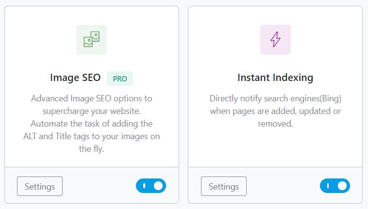 开启Image SEO(图片优化模块)与Instant Indexing(即时索引),如下图: