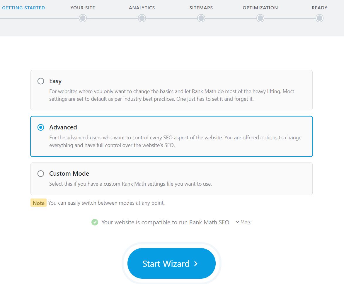 Rank Math 实际上是自行配置的。Rank Math 具有傻瓜式配置向导,可完美地为 WordPress 设置 SEO。安装后,Rank Math 会自动判断站点的设置并推荐理想设置以获得最佳性能。