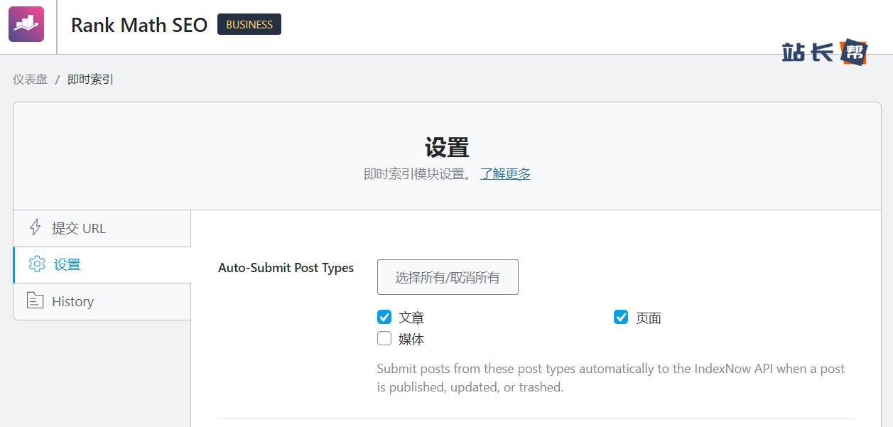 目前Rank Math PRO与Yoast SEO Premium均支持WordPress使用IndexNow自动提交。以下以Rank Math PRO v3.0.10为例: