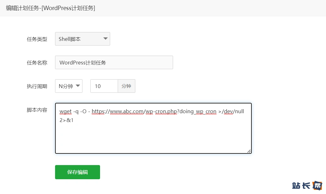 ②在crontab中添加以下指令,并设置每10分钟执行一次(注意修改域名)。