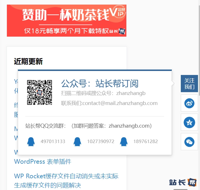 前一阵站长帮上线了WordPress分享到微信、微博、QQ空间的悬浮按钮,很多网友纷纷询问这种效果是如何做的,现将详细教程分享出来,并附上所有代码。适合任何主题的WordPress网站,如有需要者请按照教程步骤操作。