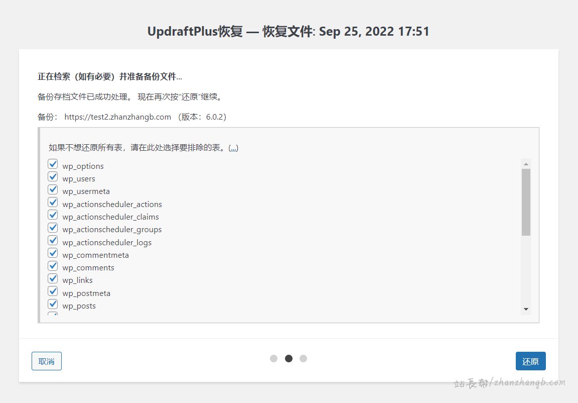 UpdraftPlus 恢复备份