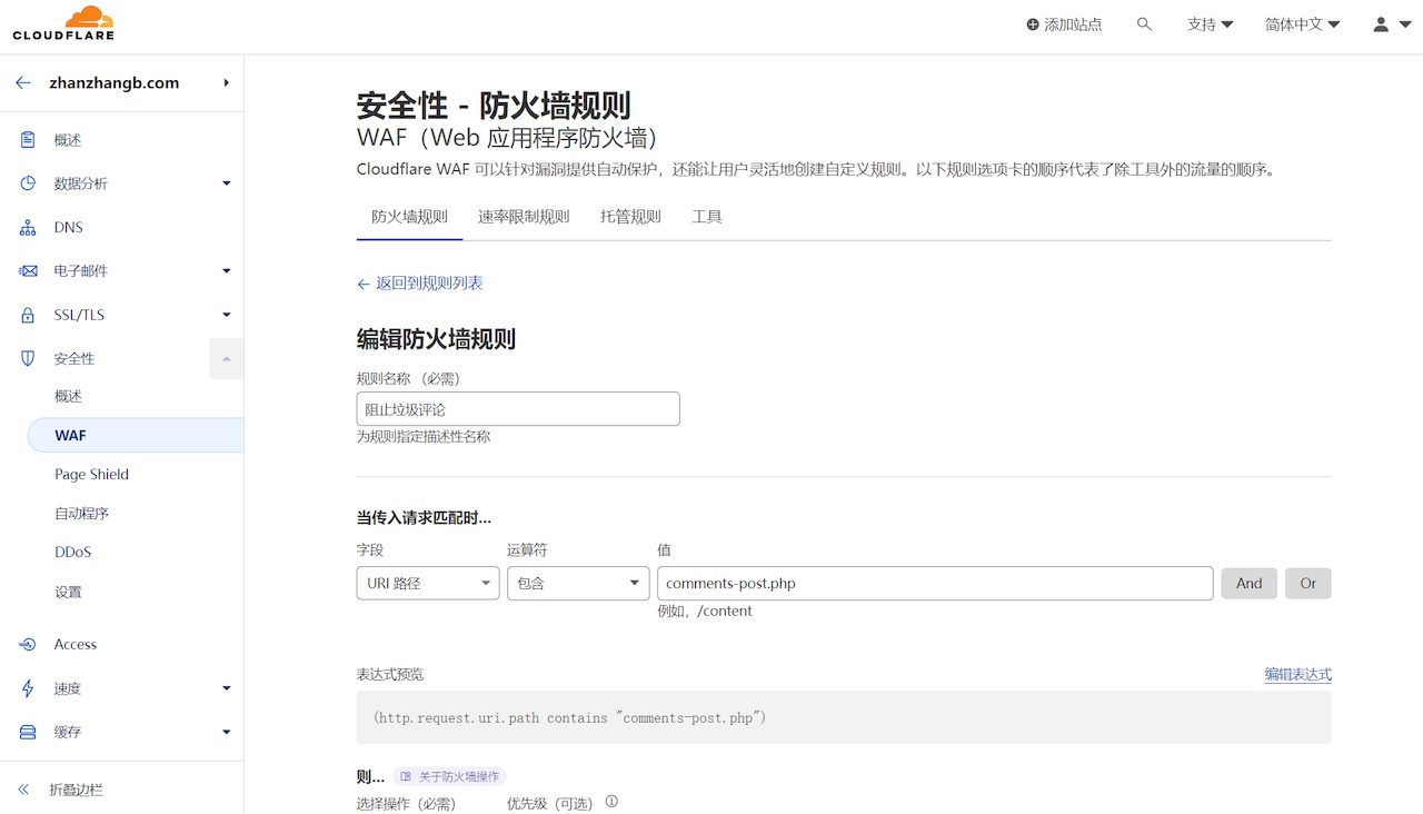 本文将介绍另外一种方式,借助 Cloudflare 之类的防火墙(免费),来阻止垃WordPress圾评论,该方法更人性化。相比 Akismet 插件而言,不会消耗额外的服务器性能。