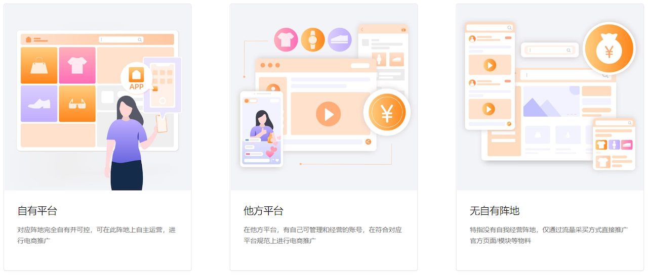 - 他方平台:在他方平台,有自己可管理和经营的账号,在符合对应平台规范上进行电商推广
