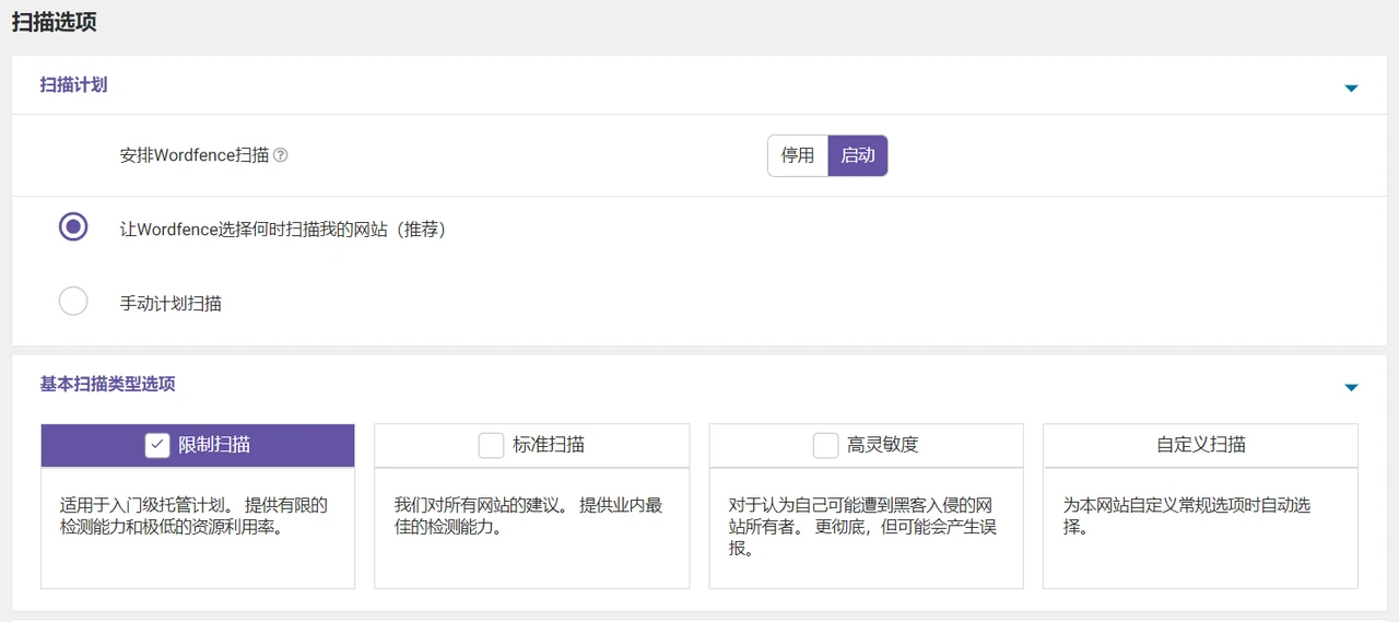 一般情况下推荐使用“限制扫描”选项,仅占用较低的系统资源。