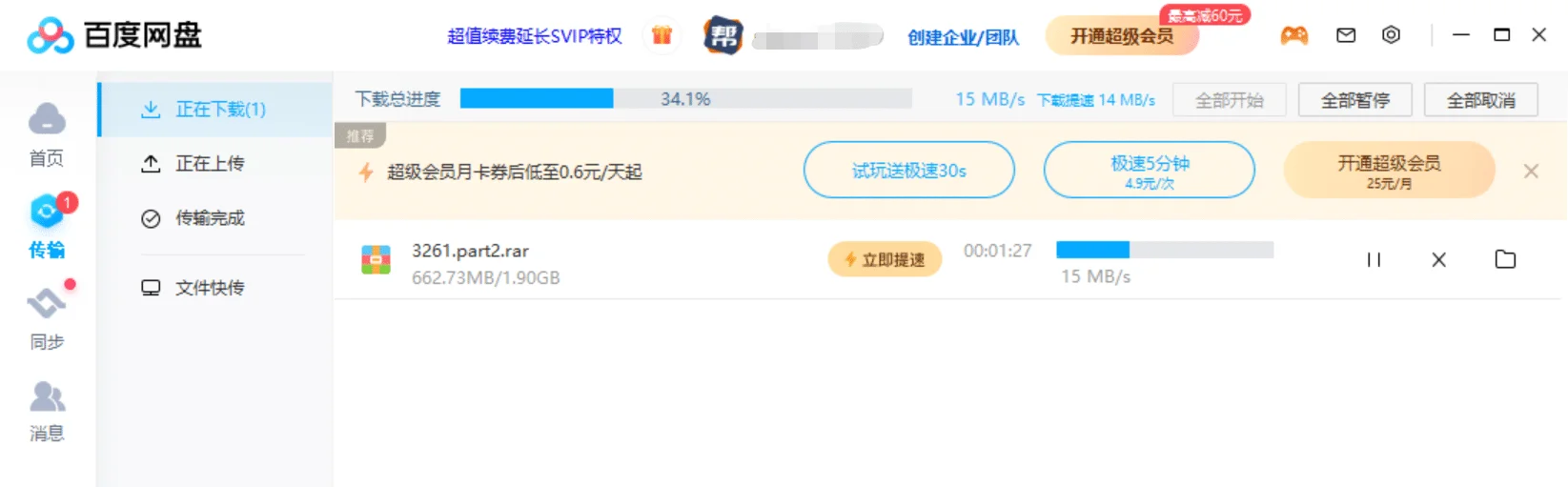 如上图,下载速度提升到了15MB/s 。